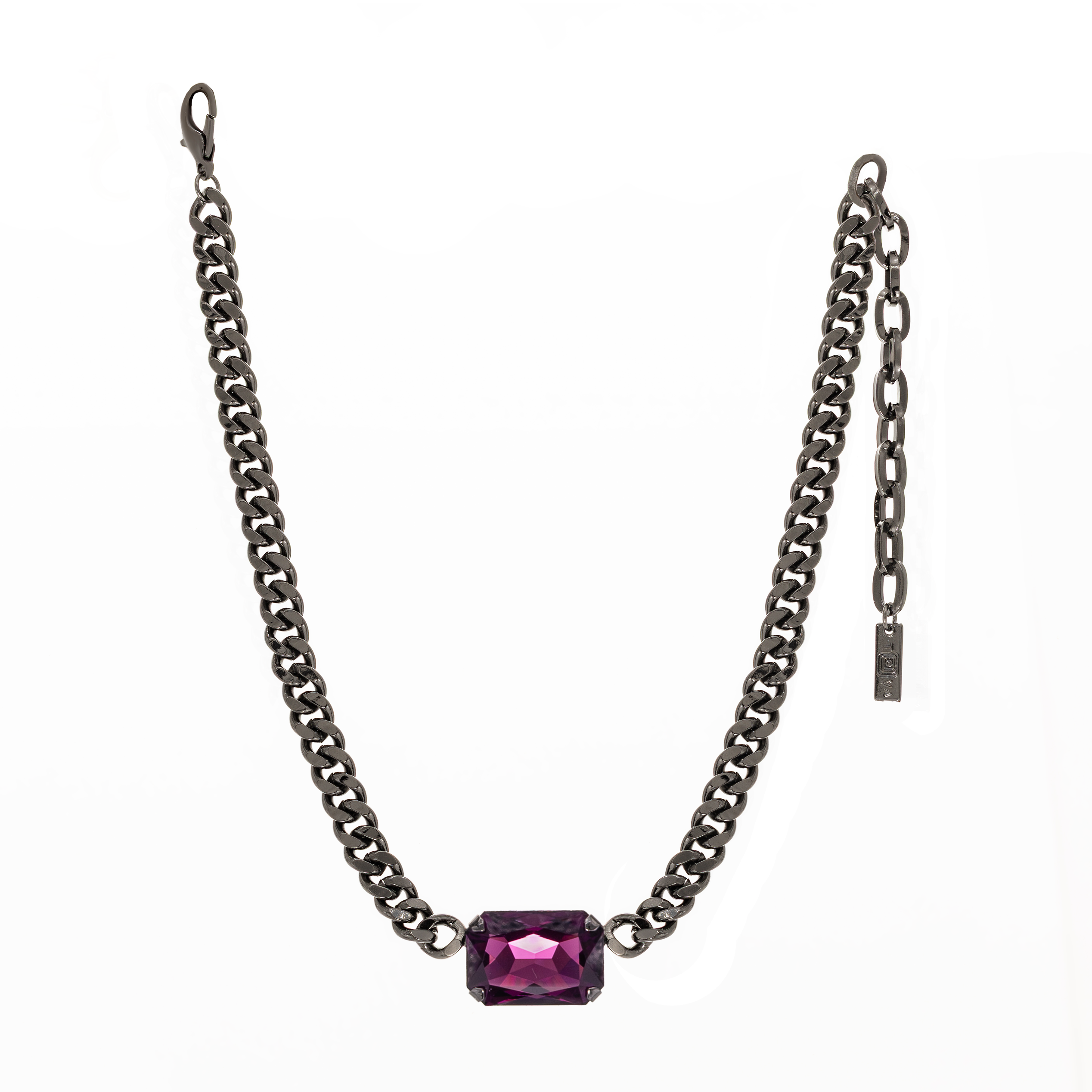 Add a touch of sparkle to your look with the Darcy Necklace in Gunmetal / Amethyst. Crafted from gunmetal-plated brass and high-quality crystal, this 14" necklace features a 3.5" extender for the perfect fit. Its shimmering design effortlessly brightens any outfit, making it your new favorite statement piece.