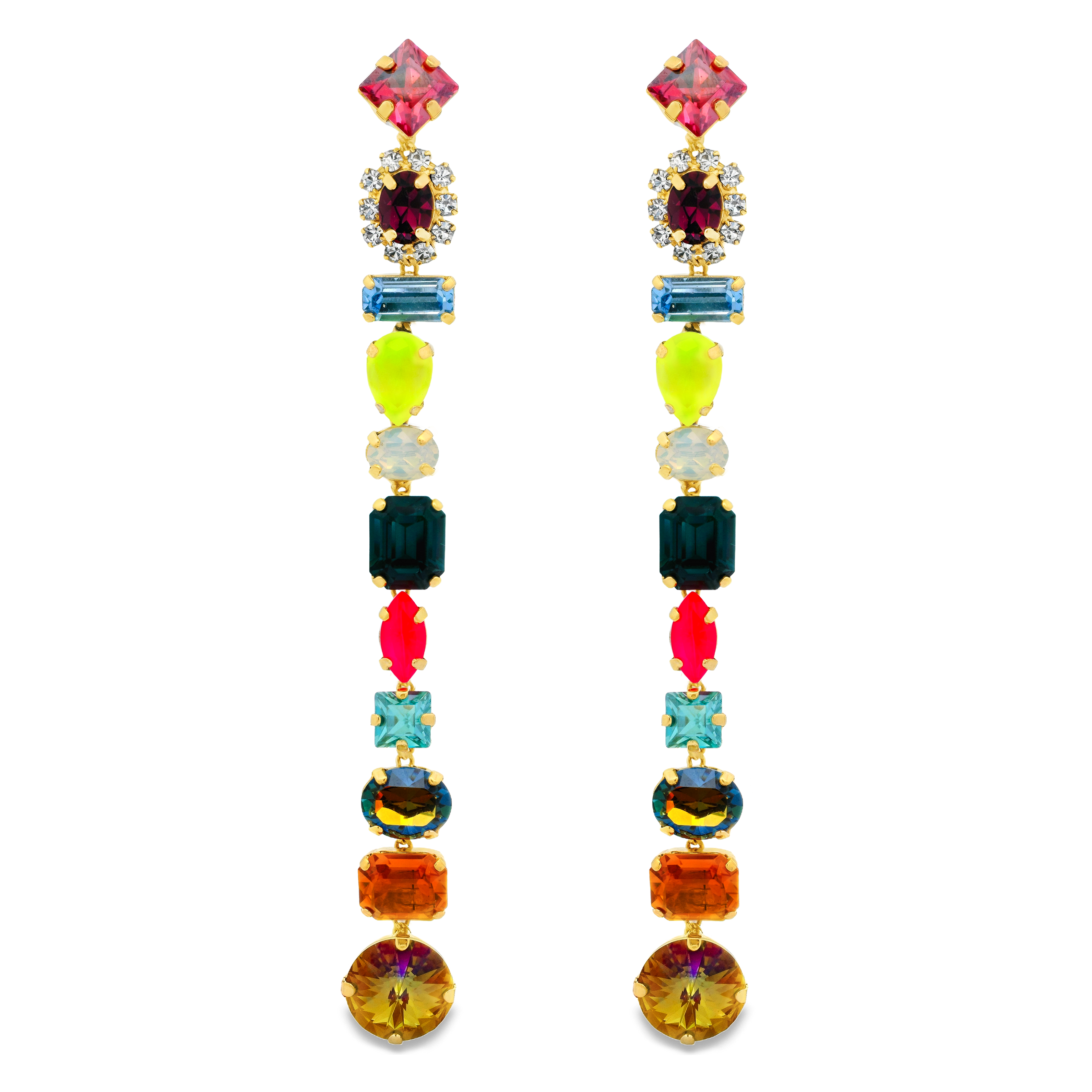 The Risley Earrings take luxury to a whole new level! Crafted from a light gold plating finish brass base metal, they are 4" in length and feature surgical steel posts. The showstoppers are the high quality crystals - totally dazzling. Get ready to sparkle like the sun!!