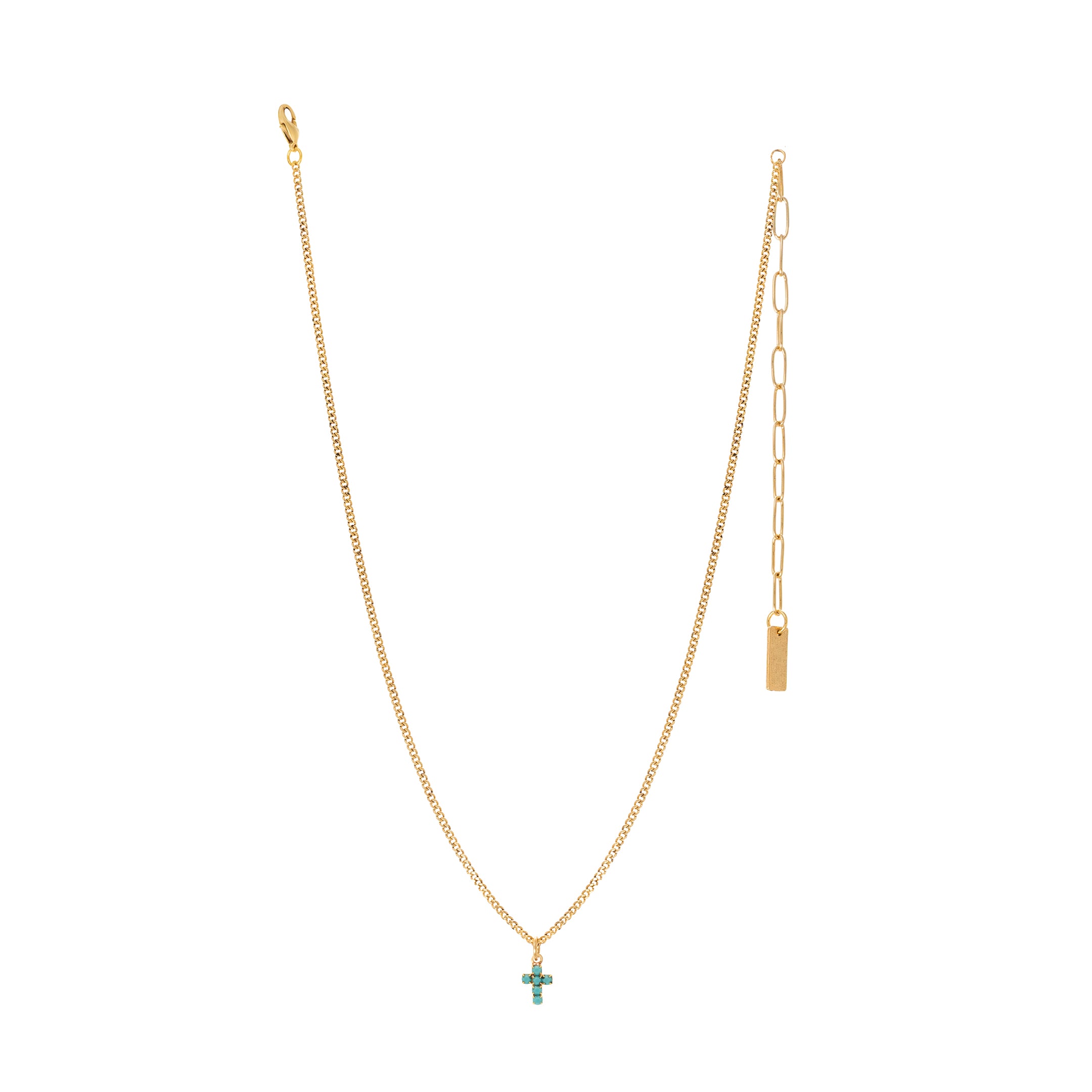 This Single Mini Cross Necklace in Turquoise is an antique gold-plated beauty that won't break the bank! It's made of brass base metal and comes in a 16" length with a 4" extender so you can give it your own personal touch. Add some flair to your look and get yours today!