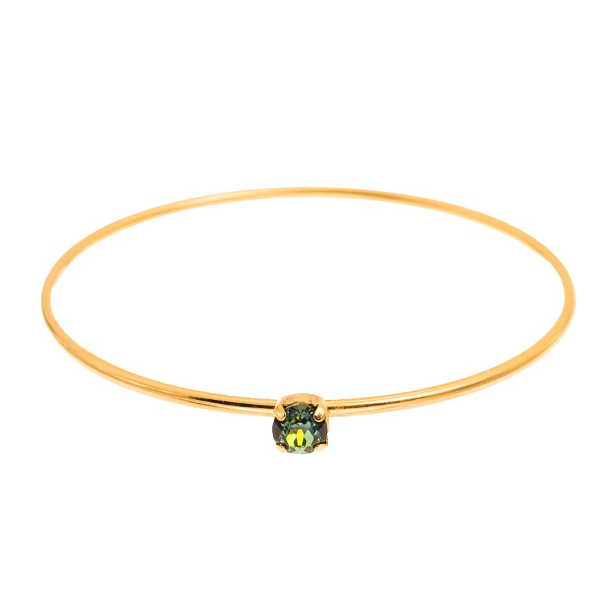 Add a touch of sparkle to your style with the Ada Bangle! Crafted from antique gold-plated brass, this playful piece shines with high-quality crystals that catch every eye. Perfect for adding a bit of glam to any outfit, it’s your new favorite wrist candy. With an inner circumference of 20 cm, 2.5" inner diameter, this bangle comfortably fits most wrists.