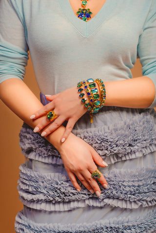 This Avani Bracelet in Golden Sahara is a real show stopper! The chartreuse colorway packs a punch with its antique gold plated Brass base metal and sparkling high quality crystals. And at 5.5" in length plus a 1.5" extension, you can dial up the drama for the perfect fit. Plus, it's made in Canada so you know it's all-around fabulous!