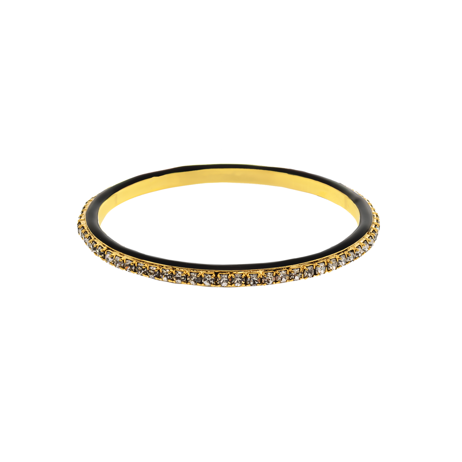Get ready to rock and roll with the Helly Bangle in Midnight Express ! This sleek and modern accessory is hand-painted with colorful enamel and adorned with high quality crystals. With an inner circumference of 20 cm, 2.5" inner diameter, this bangle comfortably fits most wrists. Handmade in Canada, it promises both quality and style - perfect for adding a touch of edginess to any outfit. Don't just make a statement, leave a lasting impression!