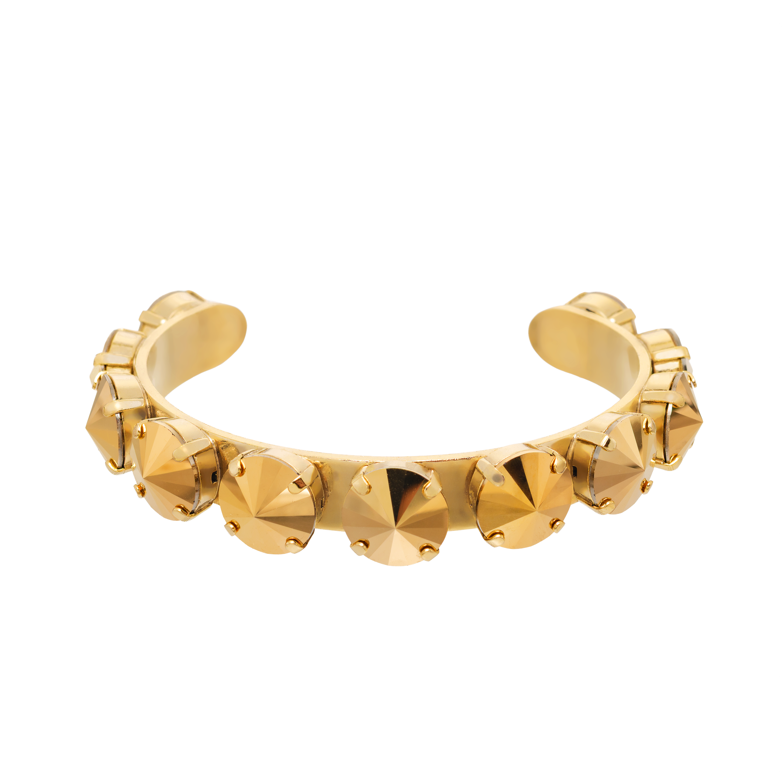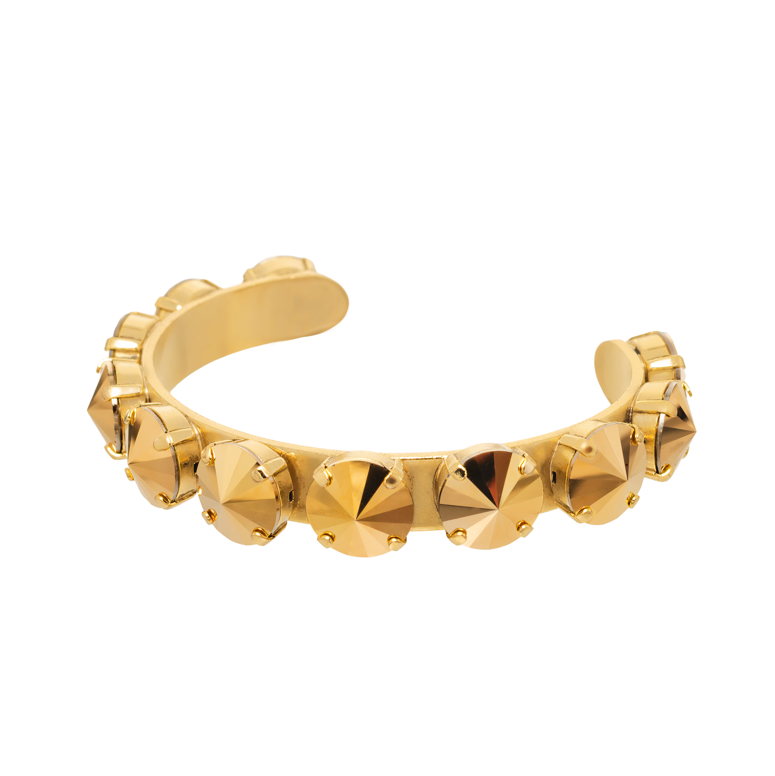 Add a subtle sparkle to your look with the Mini Keira Cuff in Aurum! This beautiful bracelet is fashioned with a plated brass base metal and high quality crystals for a hint of understated elegance that won't overpower your ensemble. It's malleable nature also makes it super comfortable to wear all day long! This piece will have you looking stylish and on-trend.