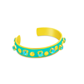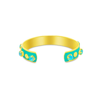 The Guinevere Cuffs - a playful and unique addition to your accessory collection. Made in Canada with antique gold plated brass, high quality crystals, and hand painted enamel, this cuff is a one-of-a-kind piece that will add a touch of quirk to any outfit!
