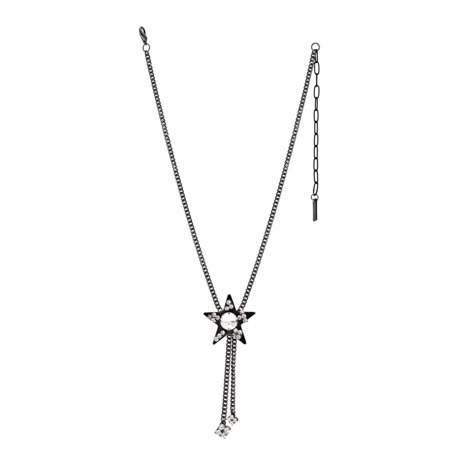Add a touch of sparkle with the Bolo Star Necklace! Crafted from gunmetal-plated brass and adorned with high-quality crystals, this 16" necklace features a playful 3" drop and a 3" extension for the perfect fit. Shine bright and let your style twinkle!