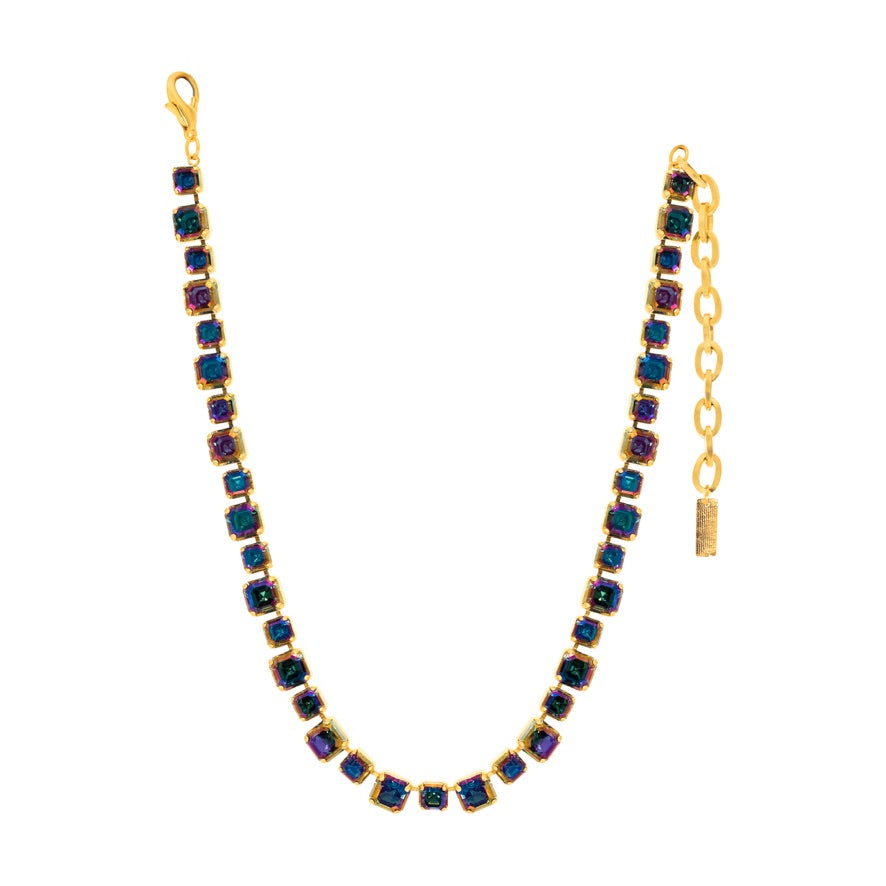 The Jadia Necklace in Montana Lemon is the perfect addition to your accessory collection. Made with high quality crystals and an antique gold plated brass base metal, this 16" necklace (with a 3" extension) adds an edgy touch to any outfit. Handcrafted in Canada, it's the perfect blend of style and quality.