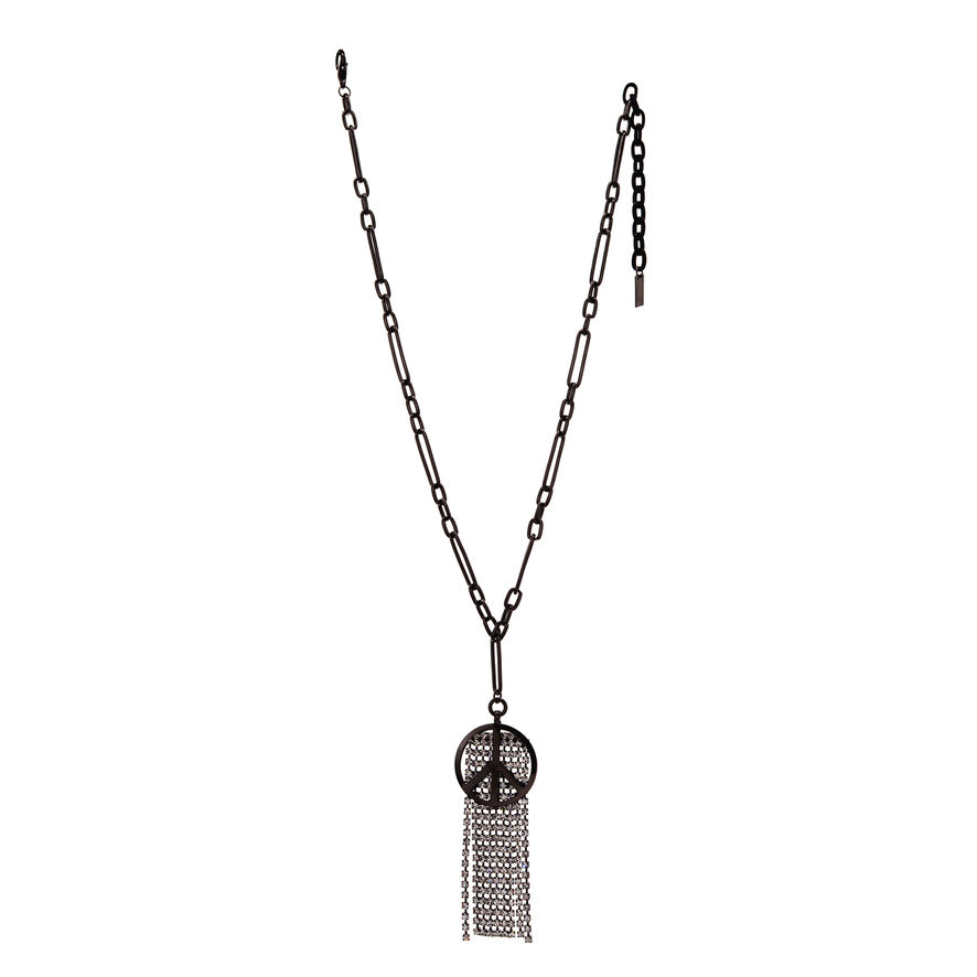Add a touch of sparkle with the Peaceful Necklace! Crafted from gunmetal-plated brass and adorned with high-quality crystals, this 24" necklace features a charming 3.25" pendant and a 3" extension for the perfect fit. Shine bright and keep it playful wherever you go!