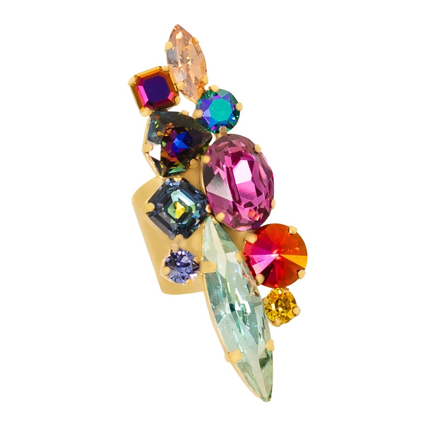 Add some sparkle to your style with the Amira Ring. This adjustable ring boasts high quality crystals set on a gold plated brass base metal. Perfect for any occasion, this ring adds luxury and elegance to any outfit.