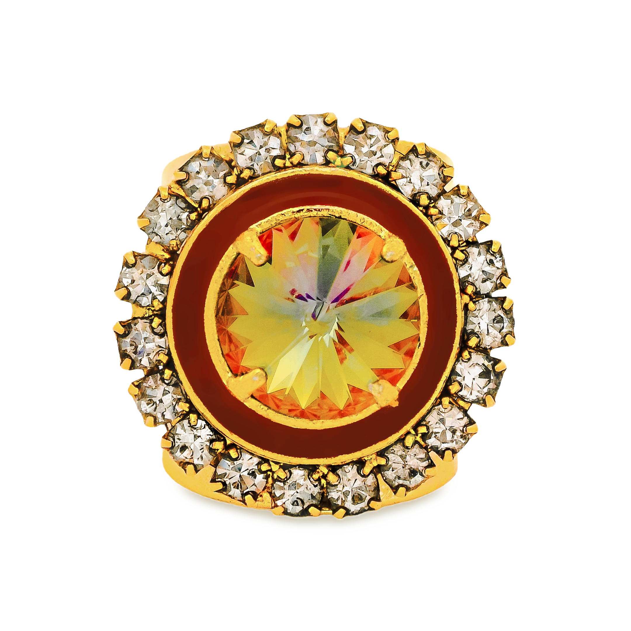 Upgrade your jewelry game with the Hershey Ring in Mocha. Antique gold plating, high quality crystals, and hand painted enamel, these beautiful rings are sure to turn heads. Made in Canada with a malleable brass base metal, it's the perfect combination of style and quality.