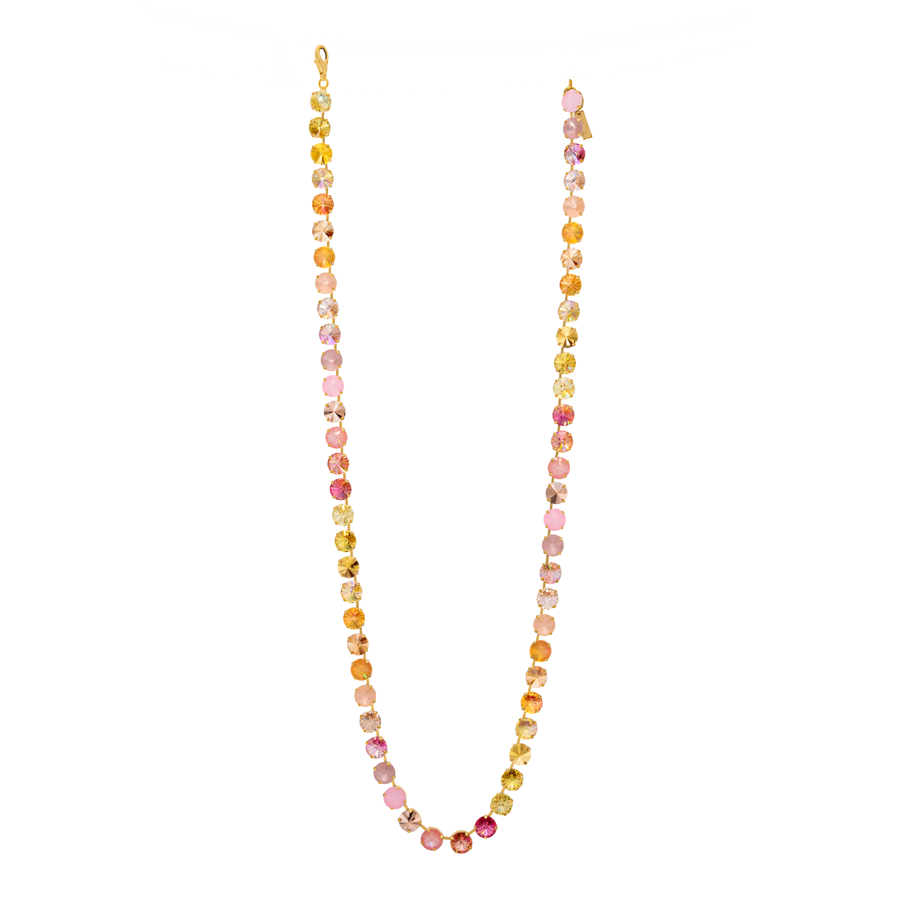 Add a touch of vintage charm with the Celia Necklace in Candy Glam Blush. Featuring a 30" antique gold-plated brass chain and sparkling high-quality crystals, this playful piece effortlessly brightens any outfit with a hint of glam and whimsy. Perfect for those who love a little sparkle with a nostalgic twist!