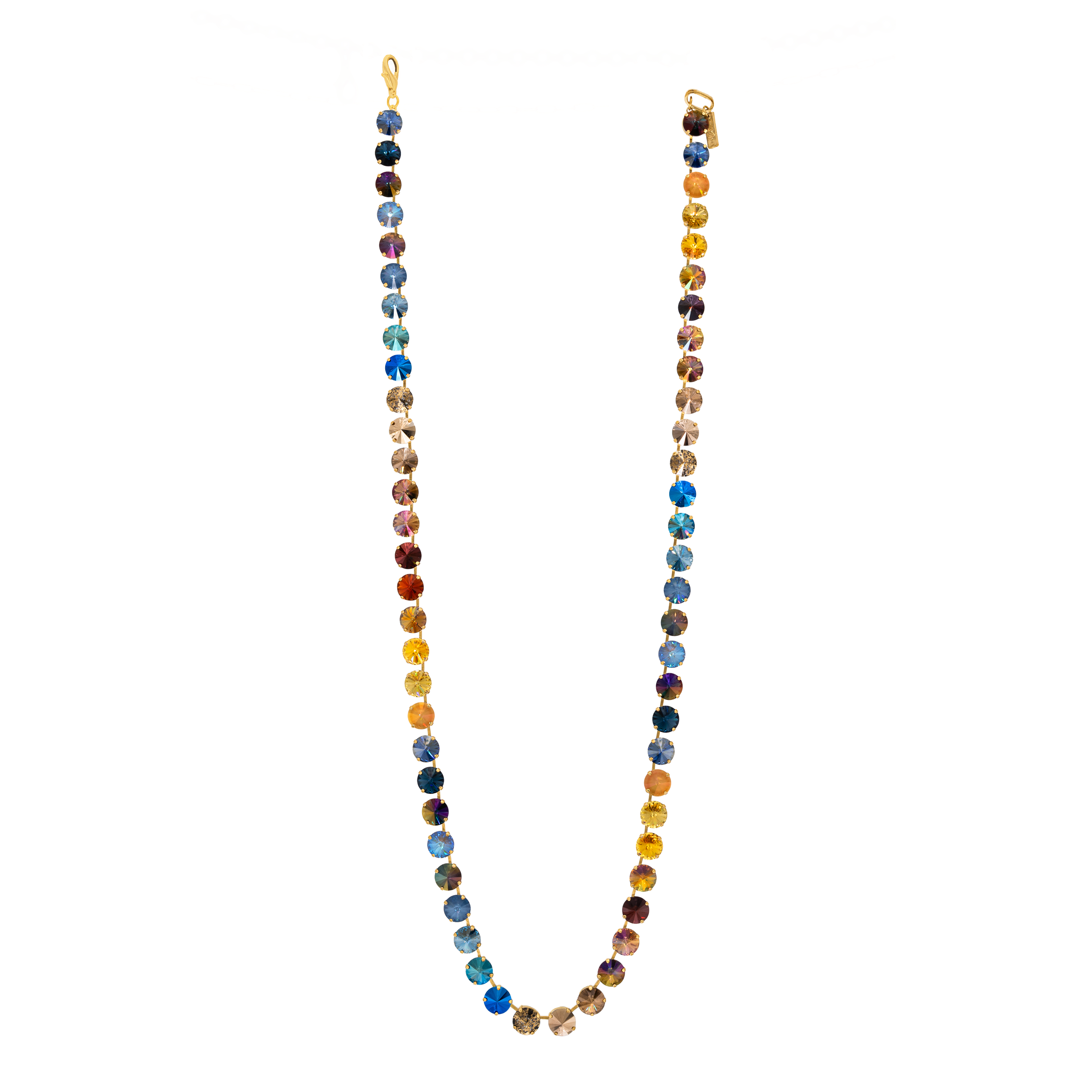 Add a touch of vintage charm with the Celia Necklace in Midnight Express. Crafted from antique gold-plated brass and adorned with high-quality crystals, this 30-inch statement piece sparkles with every move. Perfect for adding a playful yet elegant twist to any outfit, it’s your new favorite go-to for turning heads and sparking conversations.