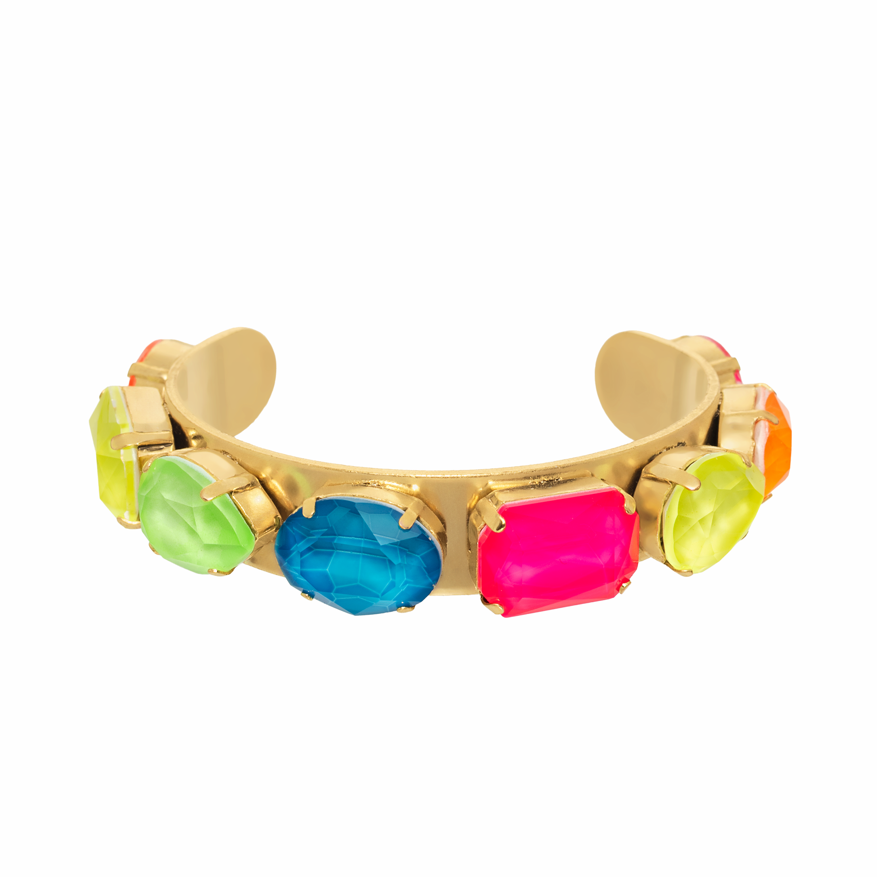 Sparkle and shine your way out with the Roma Cuff in Neon! Crafted with antique gold plated brass and high quality crystals, this cuff is adjustable for any wrist size and sparkles on the daily with its luxurious shine. And hey, it's made in Canada so it's all the more special! Slay it out with this bangin' accessory!