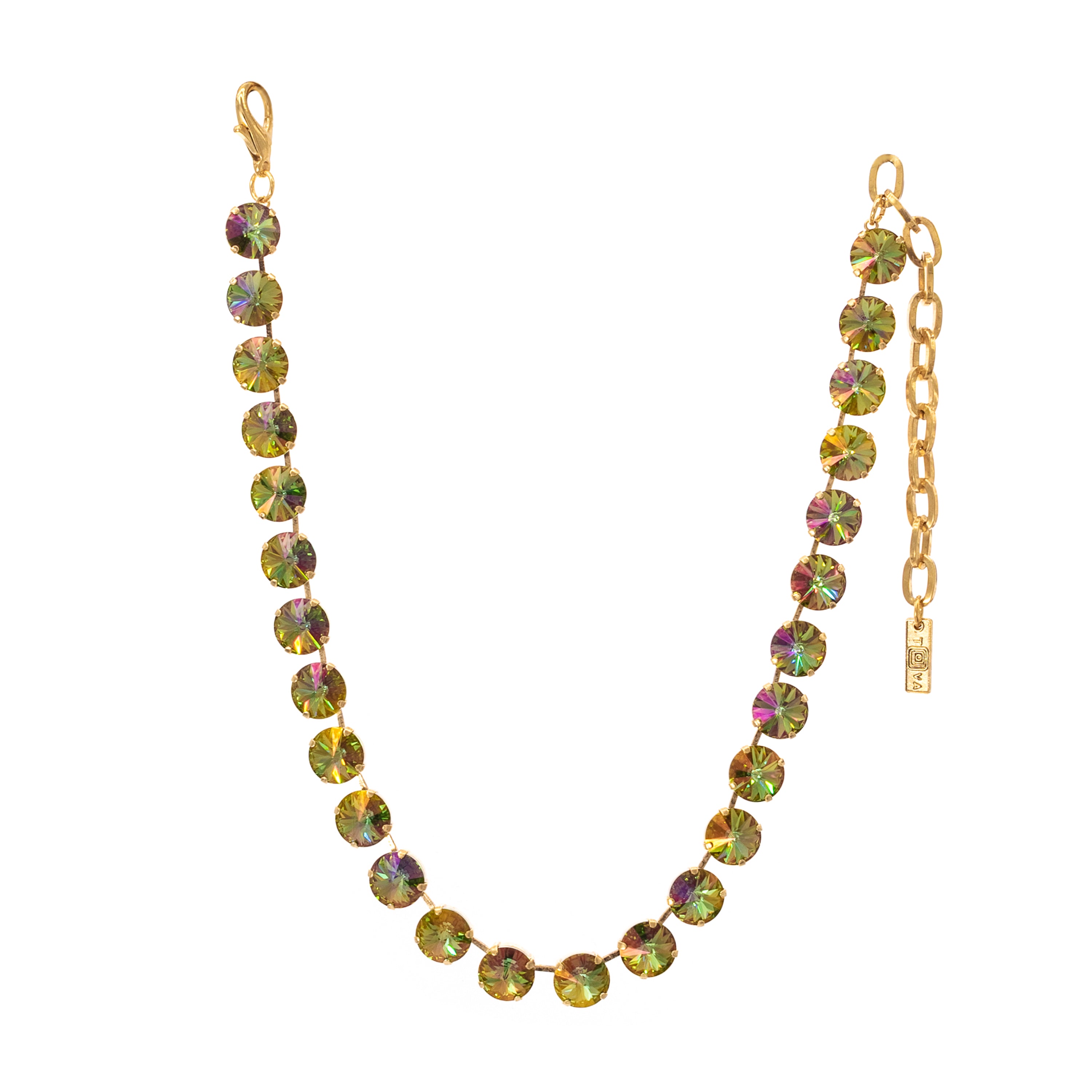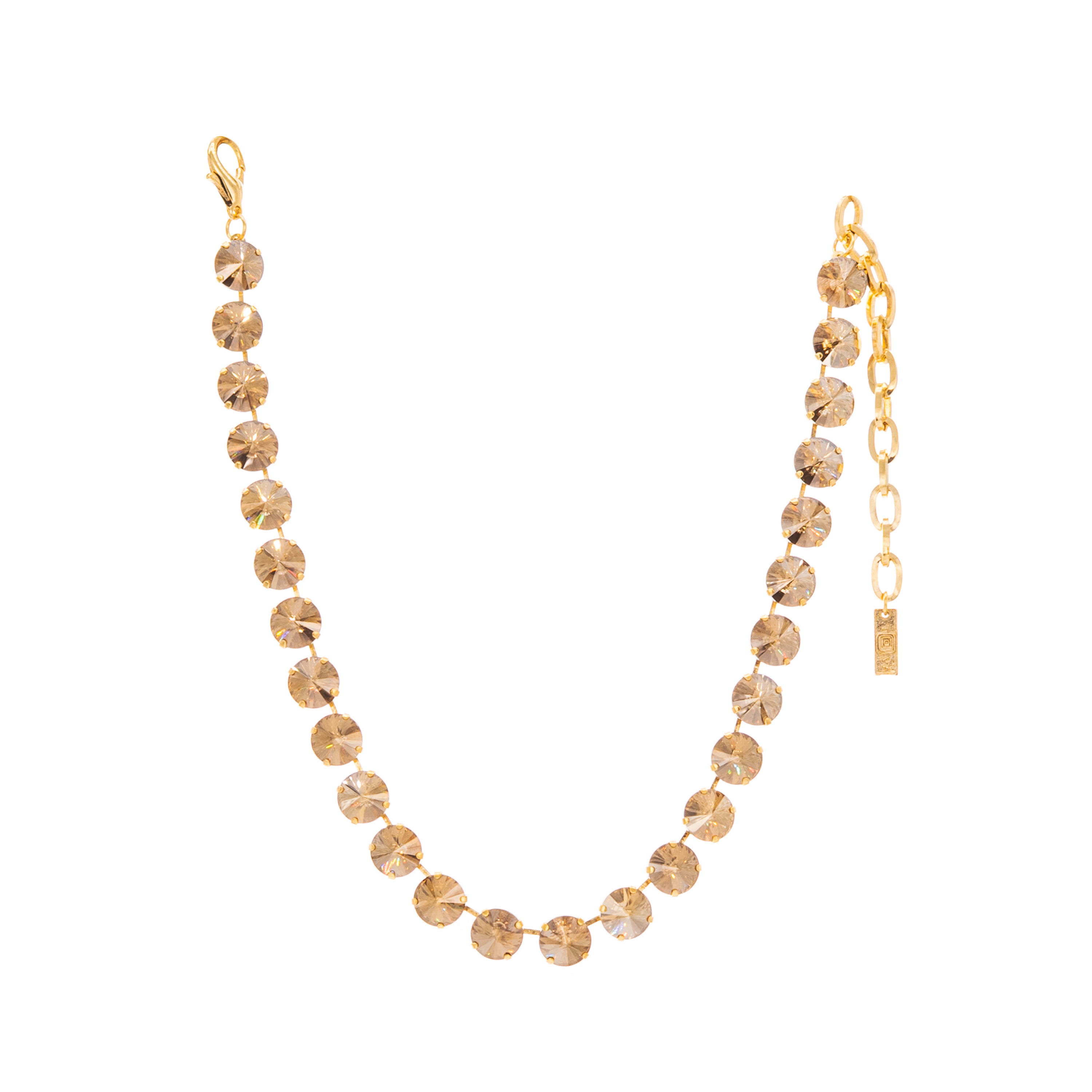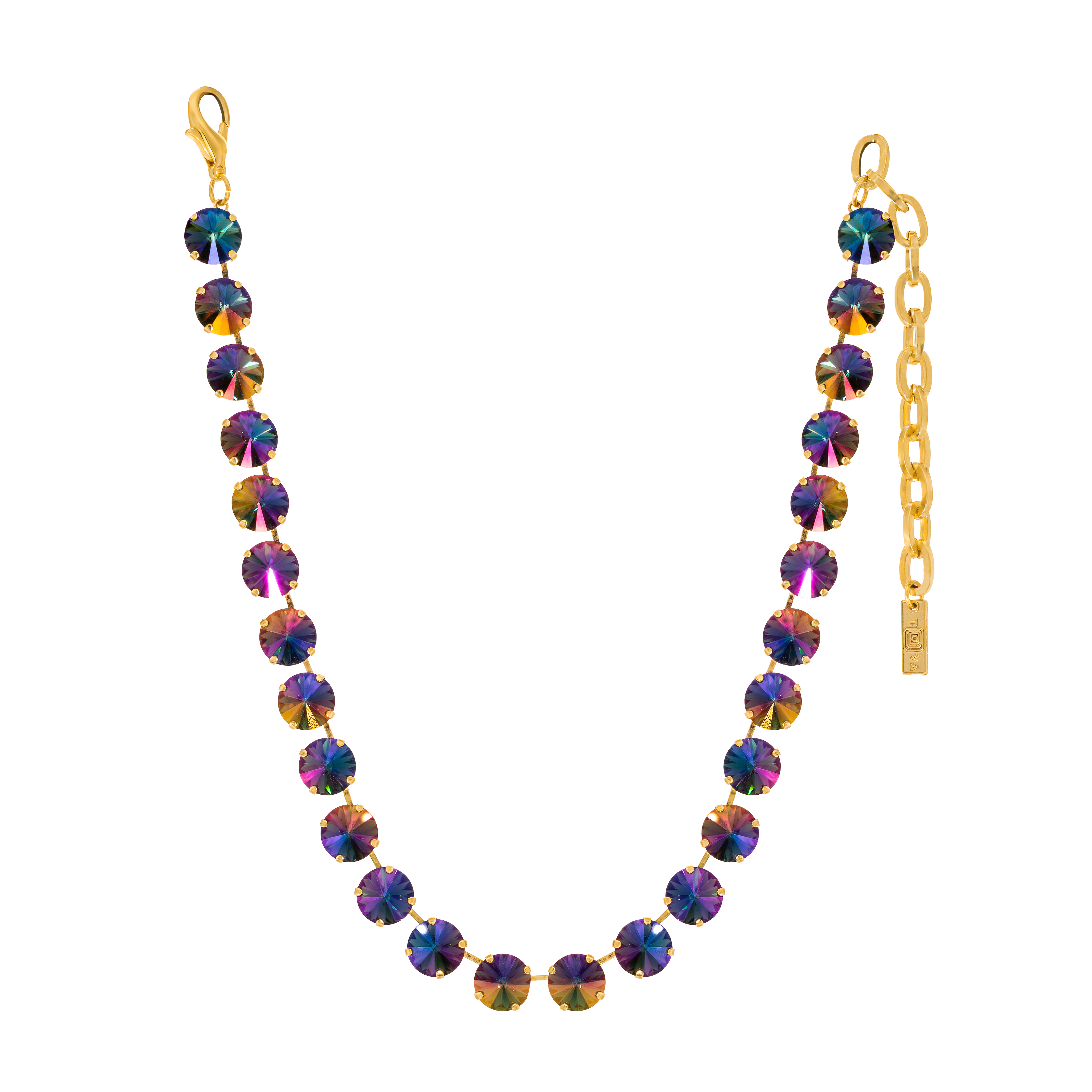 Gleam and glow in this classic beauty – The Sofia Necklace in Midnight Express. Wear just one, or layer them up for a look that's all your own! Featuring 24K Antique Gold plating, high quality crystals, and a brass base metal, this sophisticated and sexy Rivoli necklace measures a perfect 14" inches with a 3 inch extender - perfect for style that packs a little punch! Handmade in Canada. Shine in The Sofia!