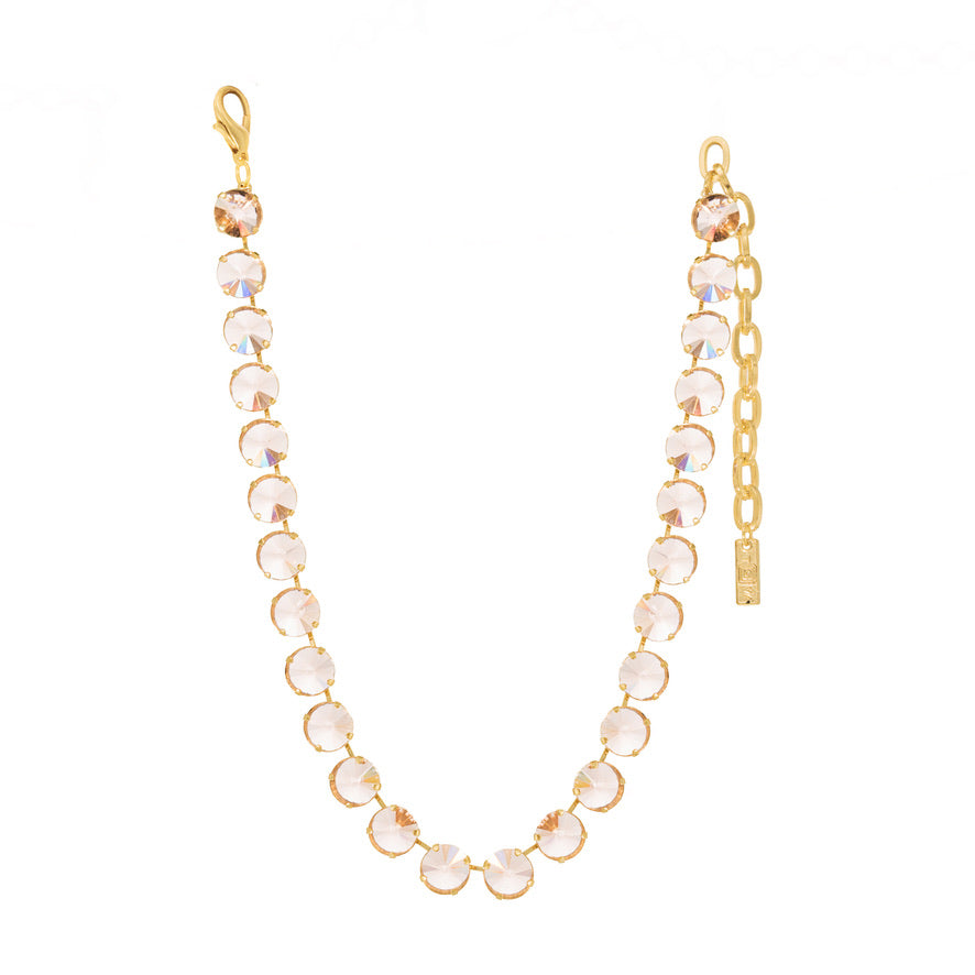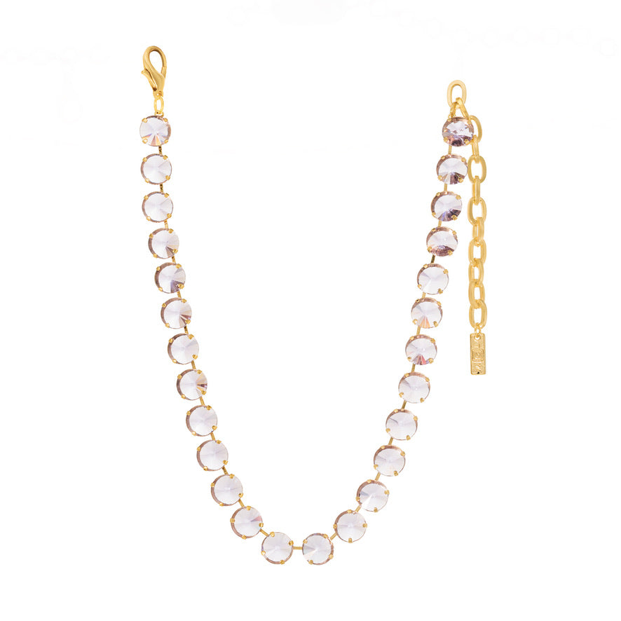 Fashionistas will love The Sofia Necklaces in Fairy Dust / Unfoiled! Built with an antique gold plated brass base and glistening high-quality crystals, this exquisite 12-inch necklace is sure to make a statement whether you're stepping out for drinks or going to a gala. So you can look and feel fabulous!